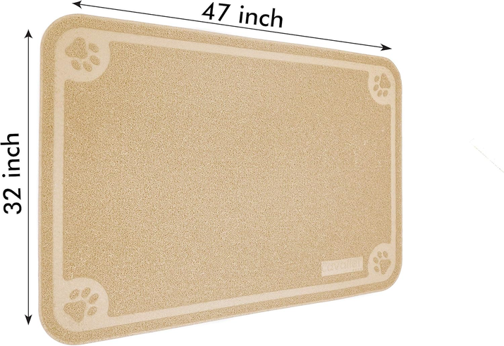 - PERFECT SIZE AND EXTREMELY VERSATILE - 47 by 31 inch surface fits MOST bowls and pet feeders. Ideal for medium to small sized pets. This water bowl mat can also be used as a cat feeding mat, a mat for dirty paws and shoes or even a play area for messy chew toys.
